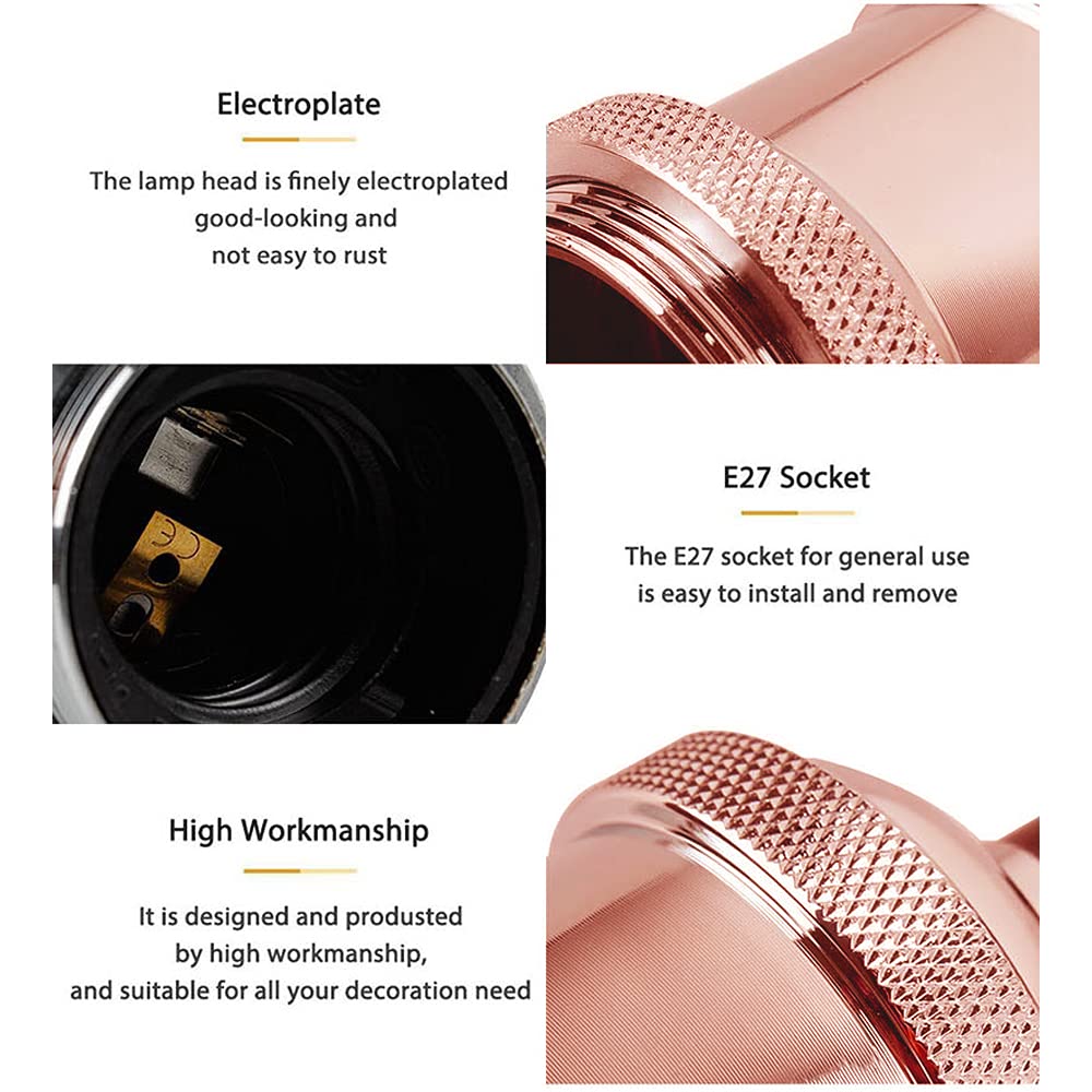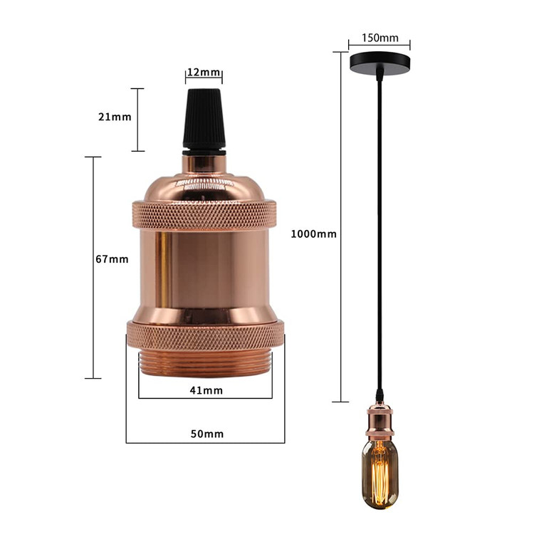 این سرپیچ لامپ فانتزی در چندین رنگ مختلف از جمله رزگلد, طلایی, نقرهای و مشکی و با کیفیت بسیار بالا به همراه سیم با روکش کنفی تولید شده و محصولی بسیار پر استفاده جهت نصب لامپهای دکوراتیو و نورپردازی محیط میباشد. استفاده از این محصول بسیار مناسبتر از سرپیچ متصل به یک سیم است. به دلیل استفاده از کابل در مرکز طناب آویز باعث شده این محصول استحکام زیادی داشته باشد و میتواند بهخوبی وزن لامپ و سرپیچ و حتی بیشتر از آن را تحمل کند.