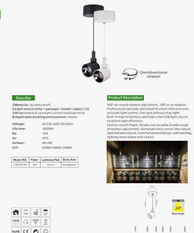 چراغ آویز LED مدل SPOT با قابلیت چرخش 360 درجه