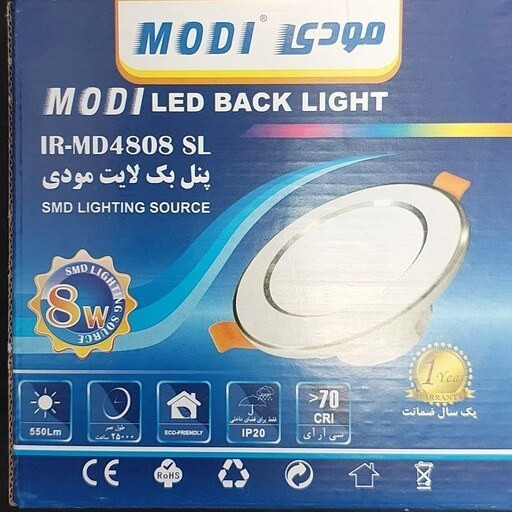 نقد و بررسی اجمالی پنل بک لایت 8 وات SMD دور نقره ای مودی مدل IR-MD4808R