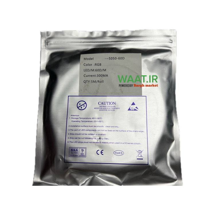 ویژگیها و مزایا: • نوردهی چند رنگ (RGB) با قابلیت تنظیم رنگ و جلوههای نوری • مصرف انرژی پایین و طول عمر بالا • تراکم بالا (60LED در هر متر) برای روشنایی یکنواخت • قابلیت برش در فواصل مشخص (معمولاً هر 3 LED) • انعطافپذیر و مناسب برای نصب در سطوح منحنی و زاویهدار • بستهبندی بهصورت رول 5 متری