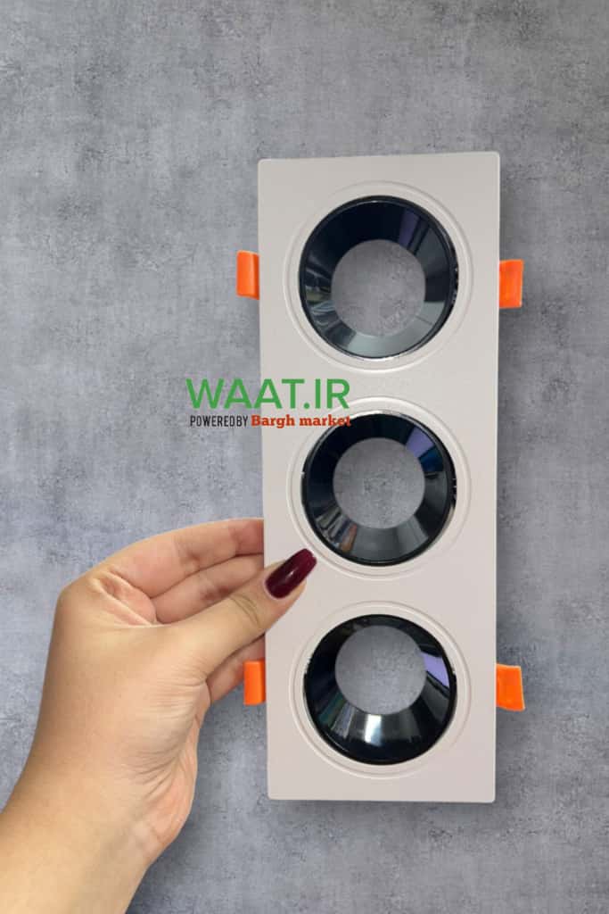 قاب هالوژن سه خانه مدل توکار، محصولی کاربردی و زیبا برای نورپردازی سقف است. این قاب با ابعاد 15×7×7 سانتیمتر و از جنس فلز مقاوم و باکیفیت ساخته شده و بهگونهای طراحی شده است که قابلیت قرارگیری سه عدد هالوژن 20 وات را دارد