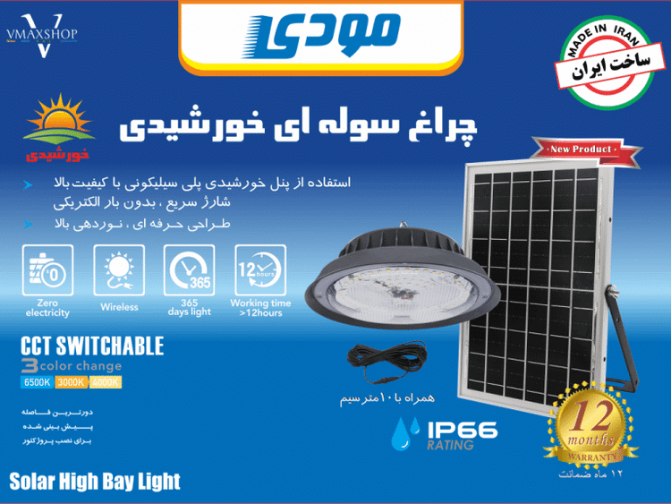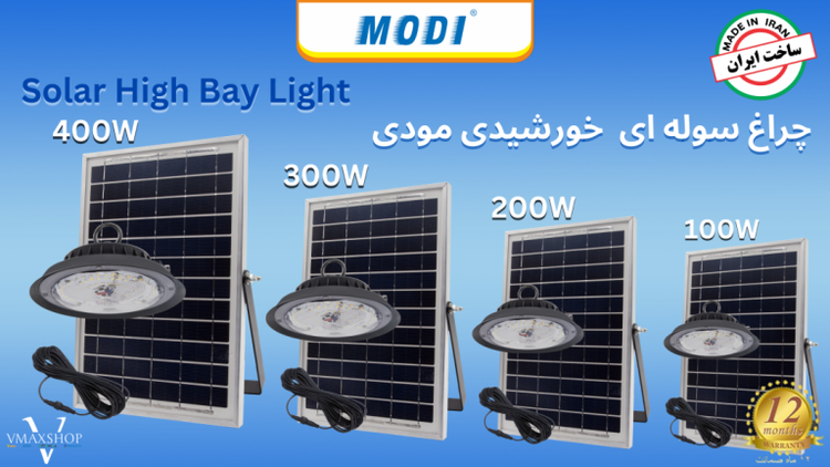 محصولات مودی بالاترین تنوع را در زمینه لوازم روشنایی ال ای دی در ایران دارد. محصولات سولار مودی دارای قدرت نوردهی بسیار بالا و دارای کیفیت و خدمات پس از فروش عالی میباشند و پس از گذشت زمان و استفاده دچار اُفت نوری نمیشود. چراغ های سوله ای خورشیدی مودی از عمر بسیار طولانی بهره میبرند و مقاومت بالایی در برابر گرما، سرما، گرد و غبار، برف و باران و ضربه دارند. همچنین قابلیت نصب بسیار آسانی دارند. میتوان چراغ سوله ای خورشیدی SMD مودی را جایگزین مناسبی برای لامپ های خیاری و مدادی پرمصرف قدیمی قرار داد.